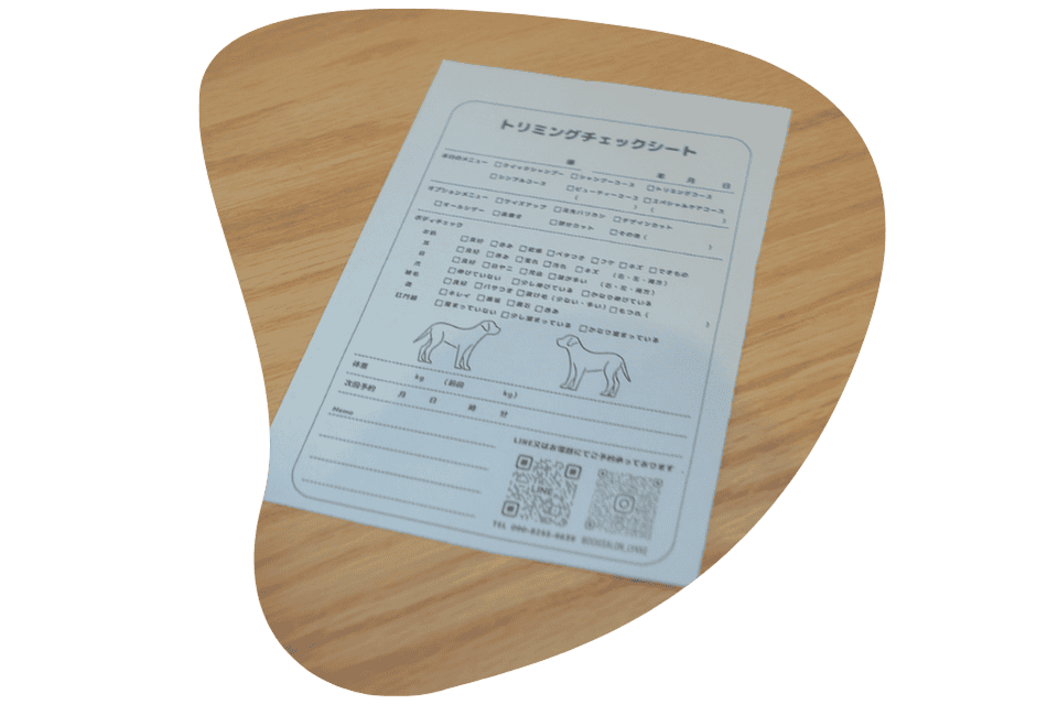 わんちゃんはお迎えまでゆっくり過ごします。トリミング時で気がついたことなどはご報告させていただきます。